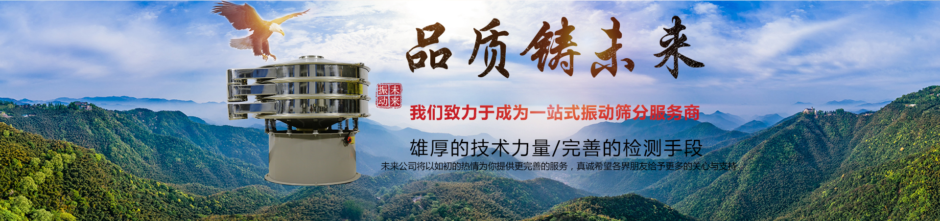 完美品質(zhì)鑄就未來 新鄉(xiāng)市未來振動設(shè)備有限公司**生產(chǎn)標(biāo)準(zhǔn)多層振動篩,陶瓷泥漿專用振動篩,面粉專用篩分機(jī),淀粉專用振動篩,超聲波振動篩,超靜音振動篩等等振動篩及其配套用振動電機(jī),設(shè)備配件?! ∥磥砉臼巧a(chǎn)振動篩分設(shè)......